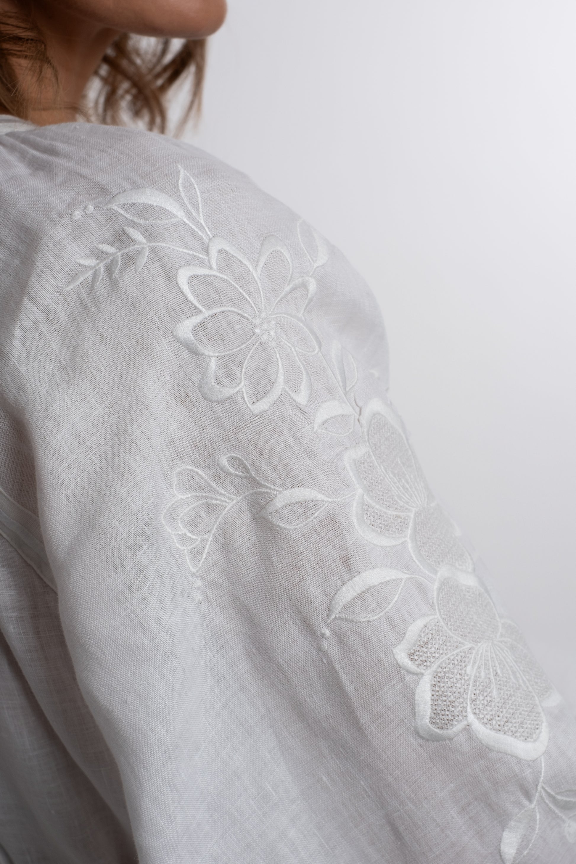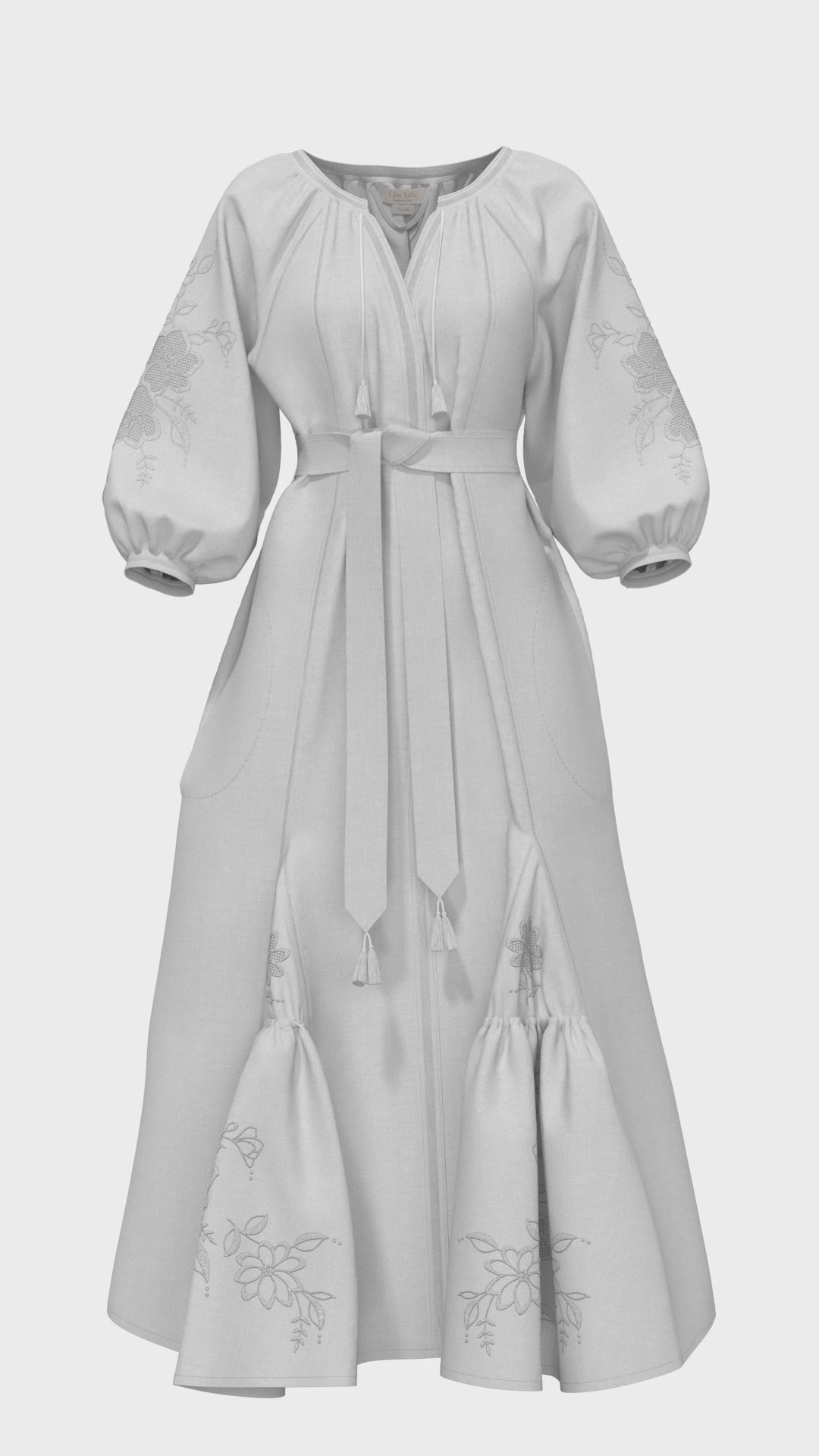 Vestido blanco para capturar la esencia de feminidad y sofisticación. Cada puntada de bordado, un total de 320.073, cuenta una historia de arte.